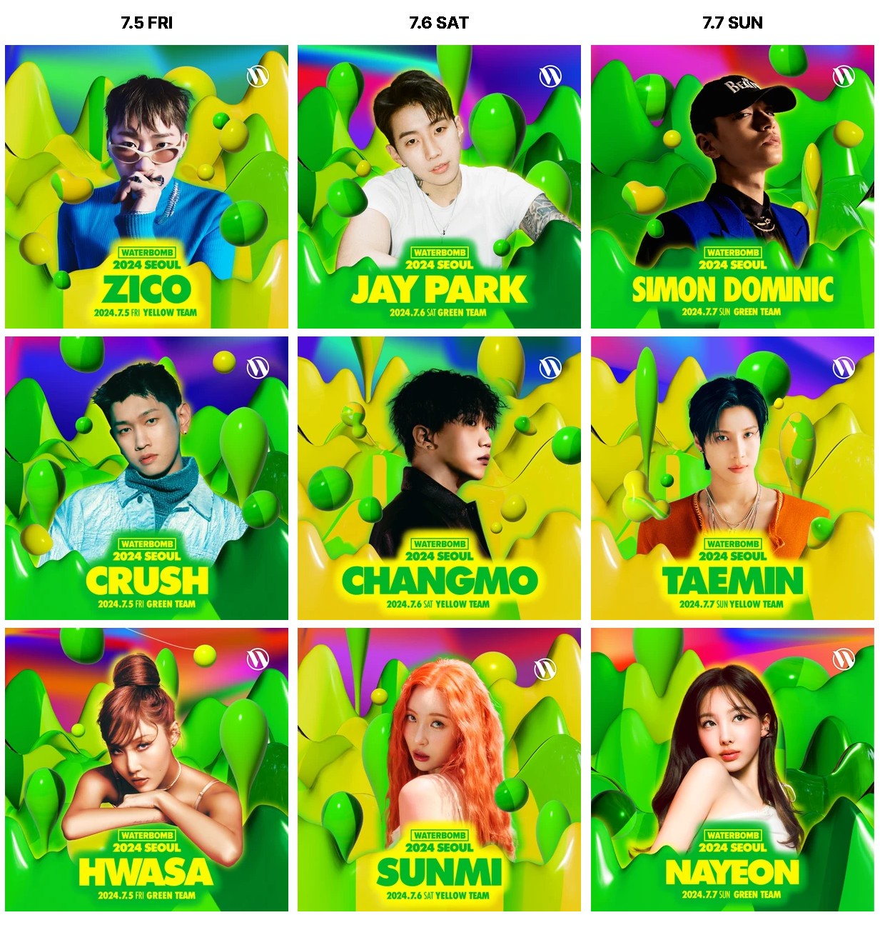 서울 워터밤 2024는 7월 5일 부터 7일까지 총 3일간 열립니다. 일별 출연진 라인업 바로 확인해볼게요~